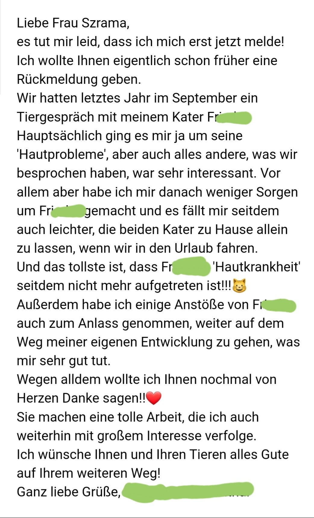 Bitte BEACHTE: die Suche nach und das Spreche mit VERMISSTEN Tieren liegt AUßERHALB meines Wirkungskreises.